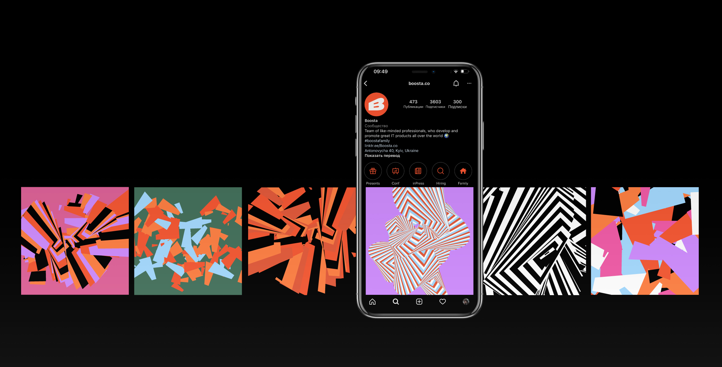 Команда Boosta надихнулася новою айдентикою та створила власний патерн-генератор, що створює візерунки з фігури логотипа в різних фірмових кольорах.