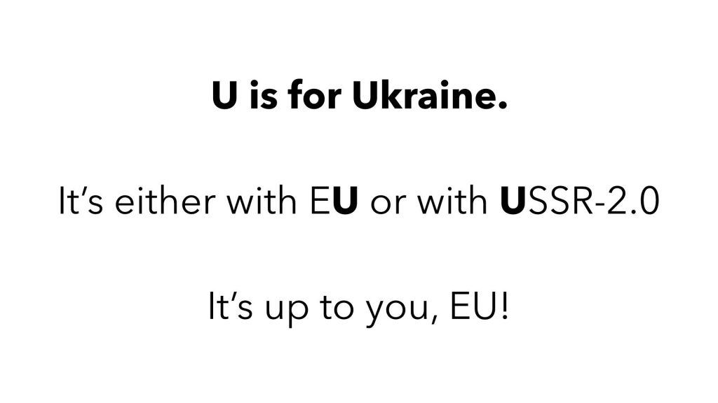 На думку автора, це свого роду стратегія-самоактуалізація, яка демонструє, що українці не лише закликають по допомогу, а й впливають на світ, мають свої інтереси та говорять про них. На зображенні має бути універсальний меседж, в різних візуалізаціях і на різних мовах. Наприклад: We definitely like u, EU!??❤️??