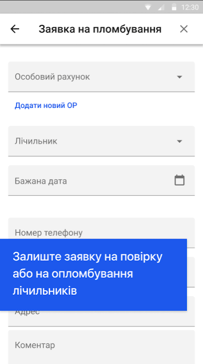• замовлення опломбування та повірку лічильників;