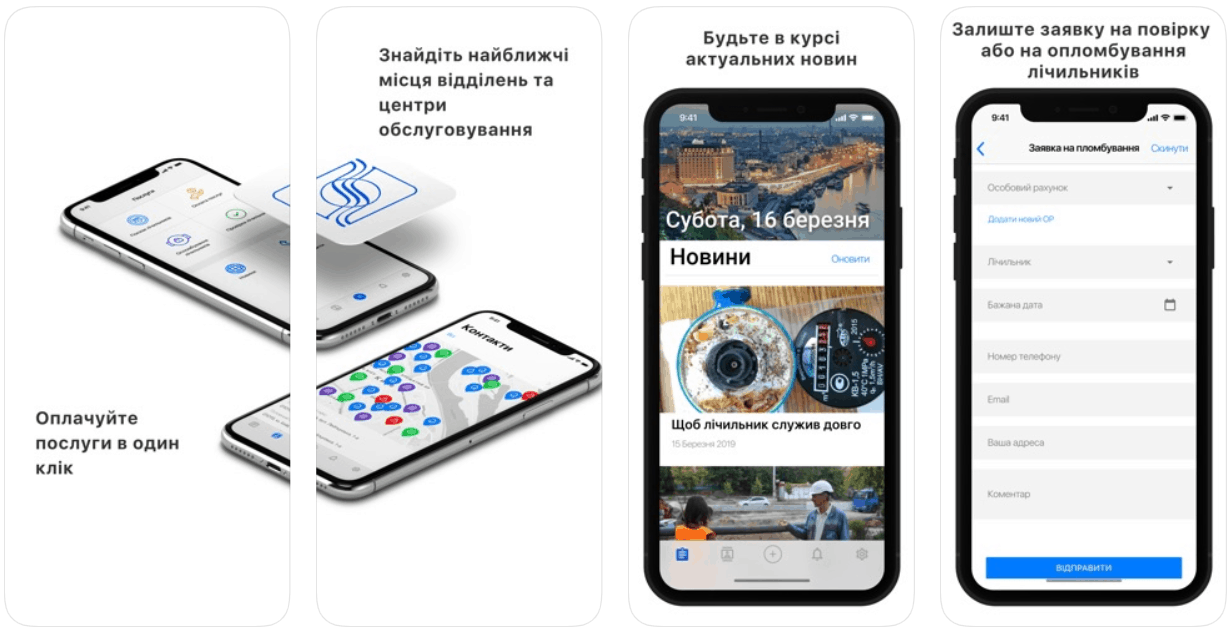 • Сплата послуг водопостачання та водовідведення у будь-який час доби через мобільний пристрій;