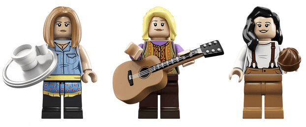 Новий набір вийшов в рамках Lego Ideas — веб-сайту, який дозволяє покупцям пропонувати свої ідеї для майбутніх продуктів. Фігурки героїв в наборі відтворюють вподобання серіальних персонажів. Наприклад, Рейчел тримає чашку з кавою на таці, Фібі гітару, а Моніка мафін. У Чендлера в руках ноутбук, у Джоуї коробка з піцою, а у Росса синтезатор. Є навіть фігурка Гюнтера з віником.