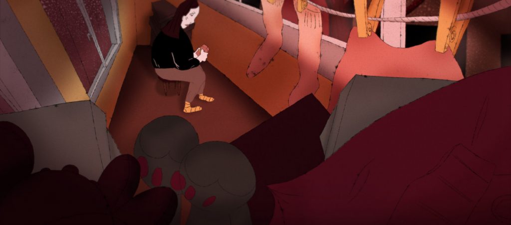 1. «Невидимі» розповідає про найкращий, або найстрашніший зі світів – внутрішній світ людини. Однойменна анімація з Румунії показує один день з життя молодої жінки, яка мешкає в родині, проте не почувається у безпеці. Втеча у потаємні куточки своєї свідомості здається їй кращим виходом.