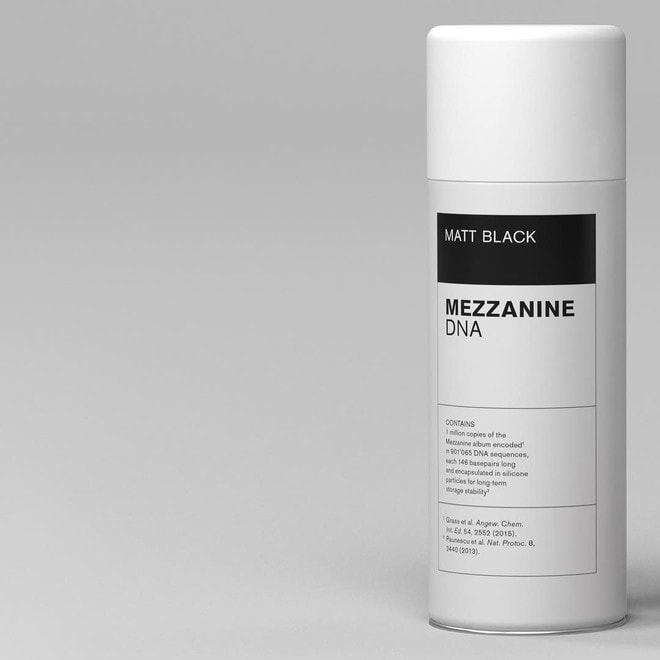А днями музиканти анонсували вихід альбому у вигляді чорних і сріблястих балончиків з аерозольною фарбою. У кожному міститься 1 мільйон молекул з ДНК «Mezzanine». Багато західних видань відзначили, що такий формат був обраний невипадково: нагадаємо, є непрямі докази, що засновник групи Роберт Дель Ная – це і є знаменитий художник Бенксі.