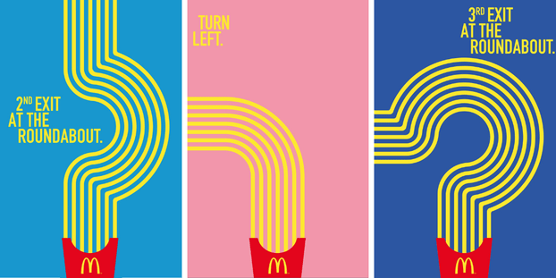 Ідея банерів така, що картопля фрі вказує водіям маршрут до найближчого МакДрайву, щоб ті могли перекусити. Всього було створено 64 варіантів кампанії для запуску на релевантних місцях. Постери містять як прості вказівки, такі як «поверни наліво», так і більш складні: «другий виїзд з кола».