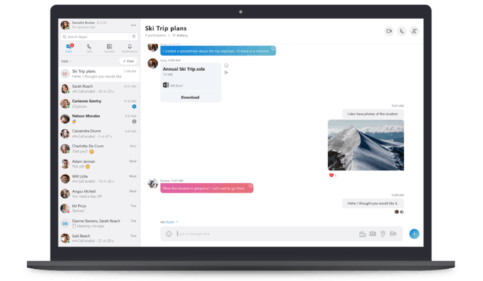 На робочому столі десктопної версії чати, дзвінки, контакти та повідомлення перемістяться у верхній лівий кут. Таким чином, звільниться більше місця у програмі для навігації в діалозі. Крім того, Skype отримає декілька нових тем різних кольорів.