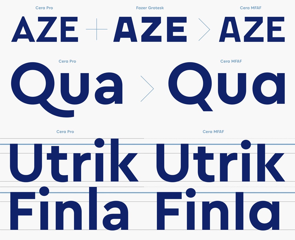 У студії 358 пояснюють: «Інструмент айдентики використовує зрендеровану в реальному часі 3D-модель глобусу, розроблену на WebGL. Користувач може додати до неї сигнали та підібрати колір, розмір, частоту, швидкість та розміщення. Після додавання сигналів та присвоєння їм функцій вони прикріплюються до таких джерел даних, як таблиця Excel, звук чи дотик». «Концепція «кілець глобусу» зображає міністерство як міжнародно надійного, гнучкого та інноваційного актора, що стабільно працює та має вплив на події в цьому бурхливому світі, — коментують ребрендинг у міністерстві. — Хвилястість блакитного логотипу у формі глобусу символізує речі, які впливають на Фінляндію, і на які Фінляндія може впливати через Службу закордонних справ. Айдентика розроблена таким чином, щоб залишатися гнучкою для використання з різними цілями і бути адаптивною як до поважного представництва, так і до маркетингових потреб». Для логотипу використали модифікований шрифт Cera Pro, розроблений студією TypeMates.