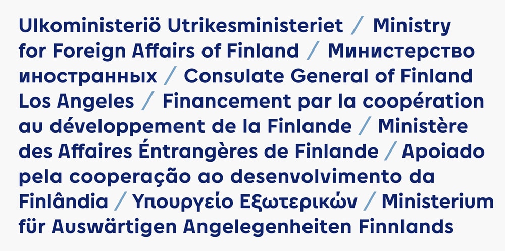 Елементами айдентики можна керувати, щоб реагувати на події у світі, через числені сигнали даних, як звуковий інпут, дані із таблиці Exel чи дотик до екрану. Для Міністерства закордонних справ це стане у нагоді, оскільки воно налічує близько 90 представництв по всьому світу. Проект втілила фінська студія 358.