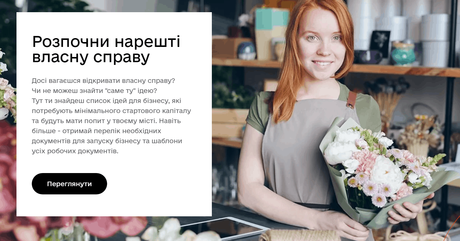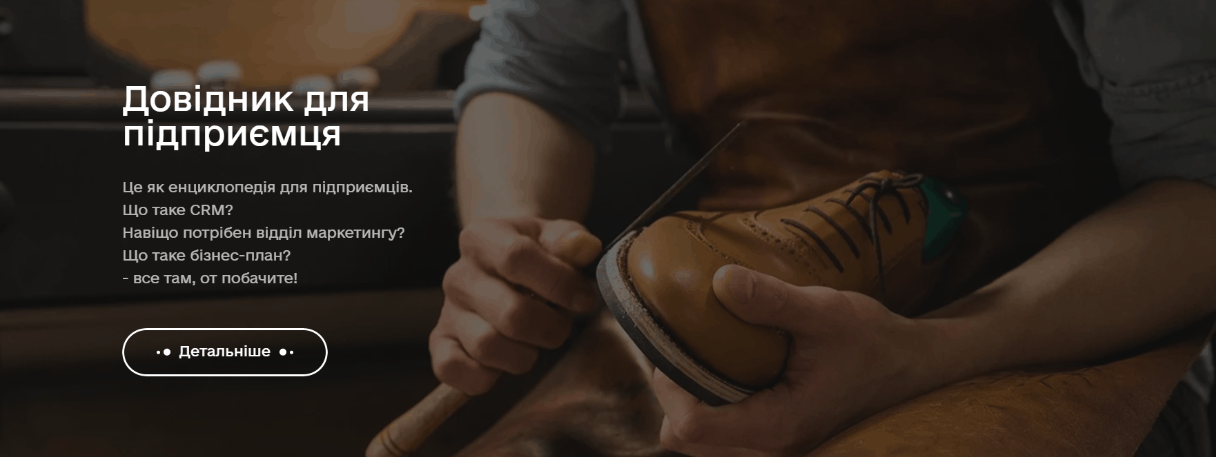 • онлайн-сервіси та програми підтримки для підприємців на одній сторінці;