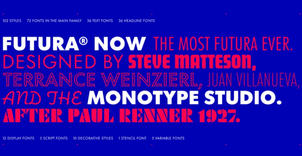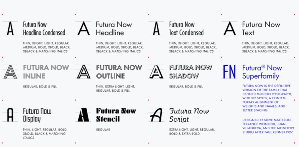 Дизайн-студія Monotype презентувала Futura Now — оновлену версію шрифту Futura 90-річної давнини. Це сімейство шрифтів, що розробили для «задоволення мінливих потреб XXI століття»
