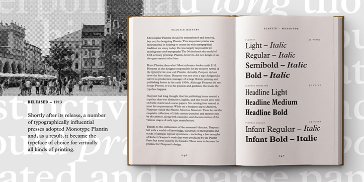 Американська корпорація Monotype – один із найбільших і найвпливовіших постачальників послуг у світі верстки, дизайну гарнітур, текстових і графічних рішень. За словами розробників, усі 665 шрифтів удосконалювалися протягом століття. Вони належать до 41 розряду.