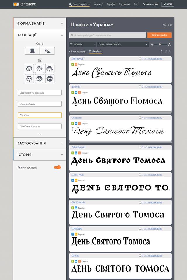 З часом на свята будуть змінюватися не тільки зразки, але і сама видача шрифтів. Нагорі будуть ті шрифти, які більш релевантні найближчому святу.