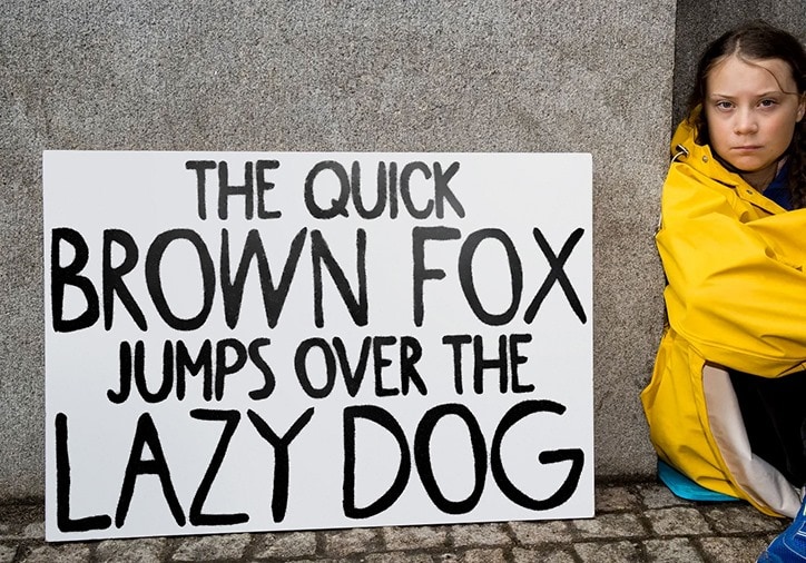 Грета Тунберг — шведська школярка, екологічна активістка. У 15 років почала протестувати біля шведського парламенту з плакатом «Шкільний страйк за клімат», закликаючи до негайних дій по боротьбі зі зміною клімату відповідно до Паризької угоди. Її дії знайшли прихильників по всьому світу, породивши масові заходи, відомі як «шкільні страйки за клімат» або «п’ятниці заради майбутнього».