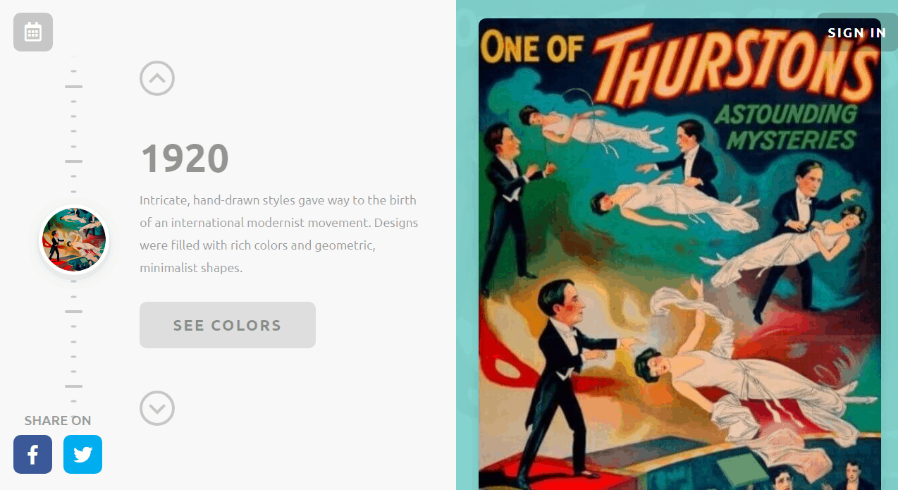 Палітри названі на честь картин, п’єс та інших творів. Кожен колір можна копіювати одним клацанням миші та використовувати у своєму власному проекті.