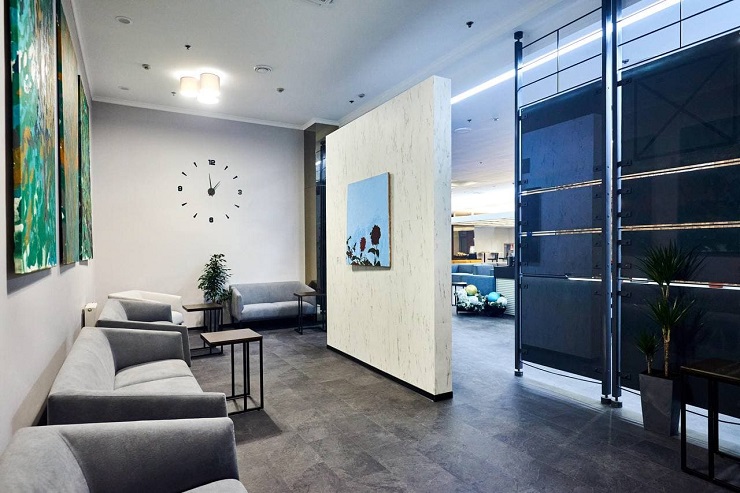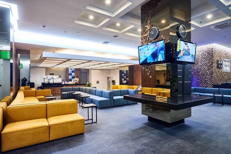 Тут є WiFi, місця для підзарядки гаджетів та можливість замовлення кави. У розпорядженні гостей лаунжу є коворкінг-зона та переговорна кімната.