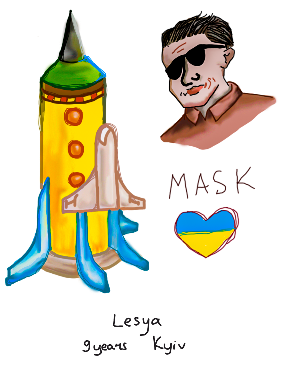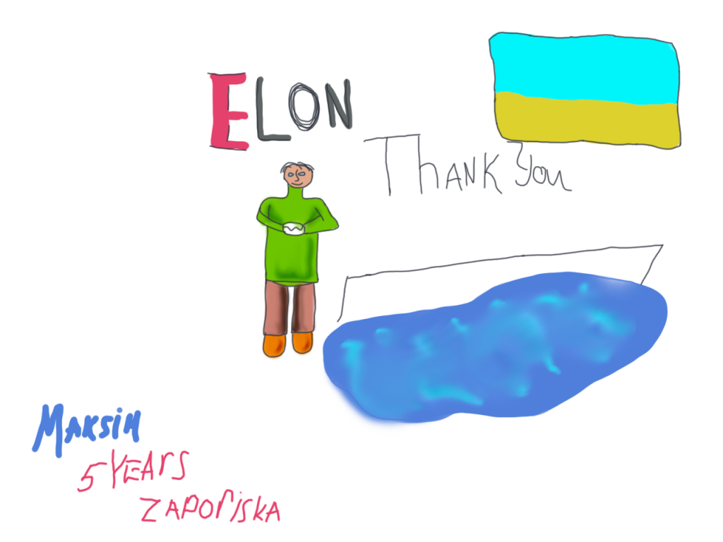 Воно складається з 20 малюнків дітей з різних регіонів України. Кожен малюнок зображує Ілона Маска або говорить йому «дякую». Зображення створили в знак подяки Маску за його підтримку та допомогу Україні.