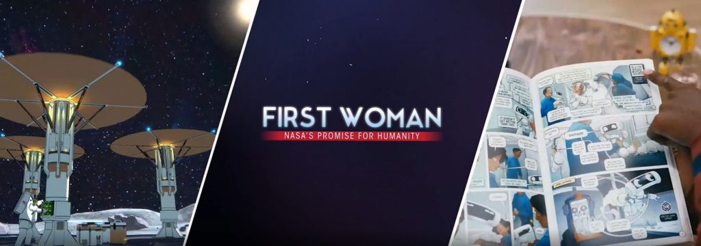 Космічна агенція НАСА випустила свій перший цифровий інтерактивний комікс «Перша жінка» до Національного дня коміксів в США. Він розповідає історію Каллі Родрігес – героїні, яка першою дослідила Місяць.
