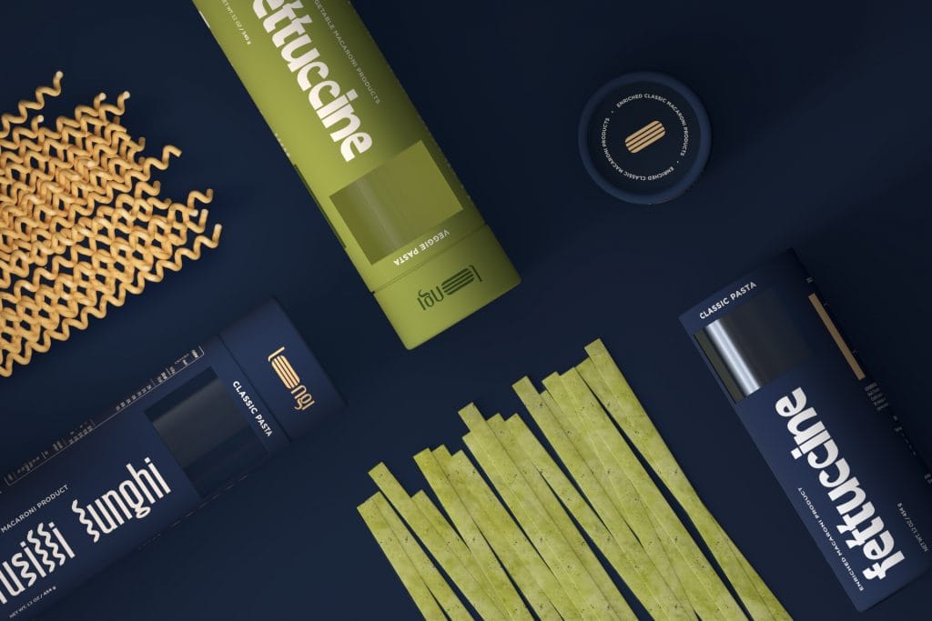 1) Shyika&Shyika з проєктом для виробника макаронних виробів Longi Past. Створили типографіку, яка імітує унікальну форму кожного типу макаронних виробів, обрали нестандартну форму пакування (тюбик) без зайвих елементів.