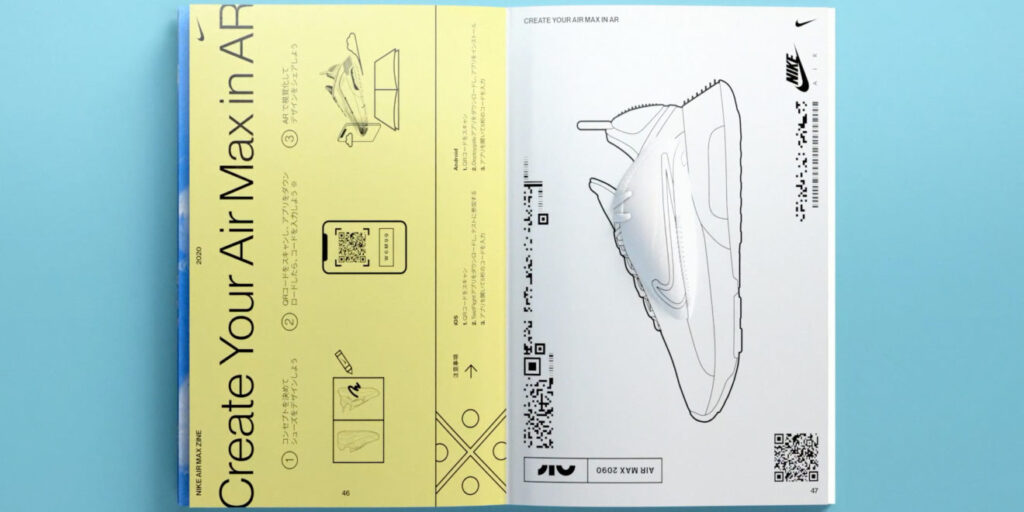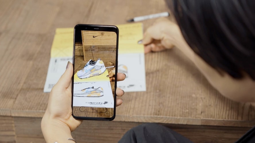 Треба навести камеру смартфона на розмальовку та тривимірні зображення кросівок на екрані почнуть парити в повітрі над малюнком.