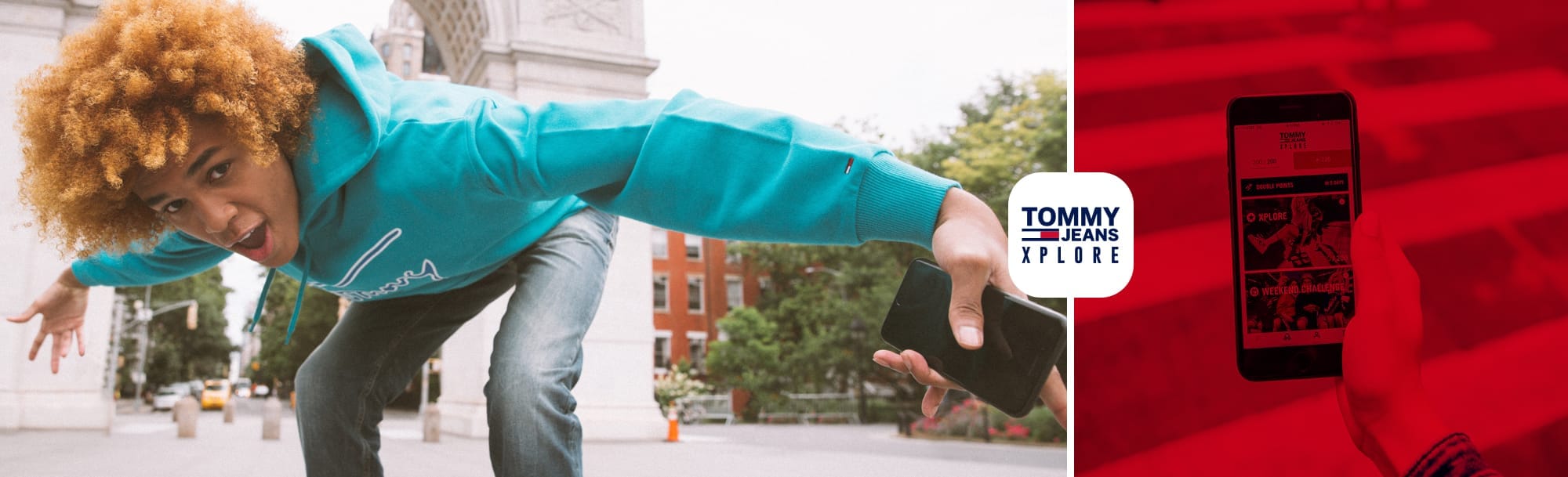 Колекція Tommy Jeans Xplore включає в себе футболки, толстовки, джинси, куртки, кепки та сумки, які з’єднуються з додатком на iOS за допомогою Bluetooth. Ідея полягає в тому, що користувачі зможуть використовувати додаток для збирання балів. Ви отримуєте більше балів, якщо частіше носите одяг з данної колекції, а також шукаєте значки у формі серця, позначені Tommy на карті додатка (схожий алгоритм був в грі Pokemon Go).