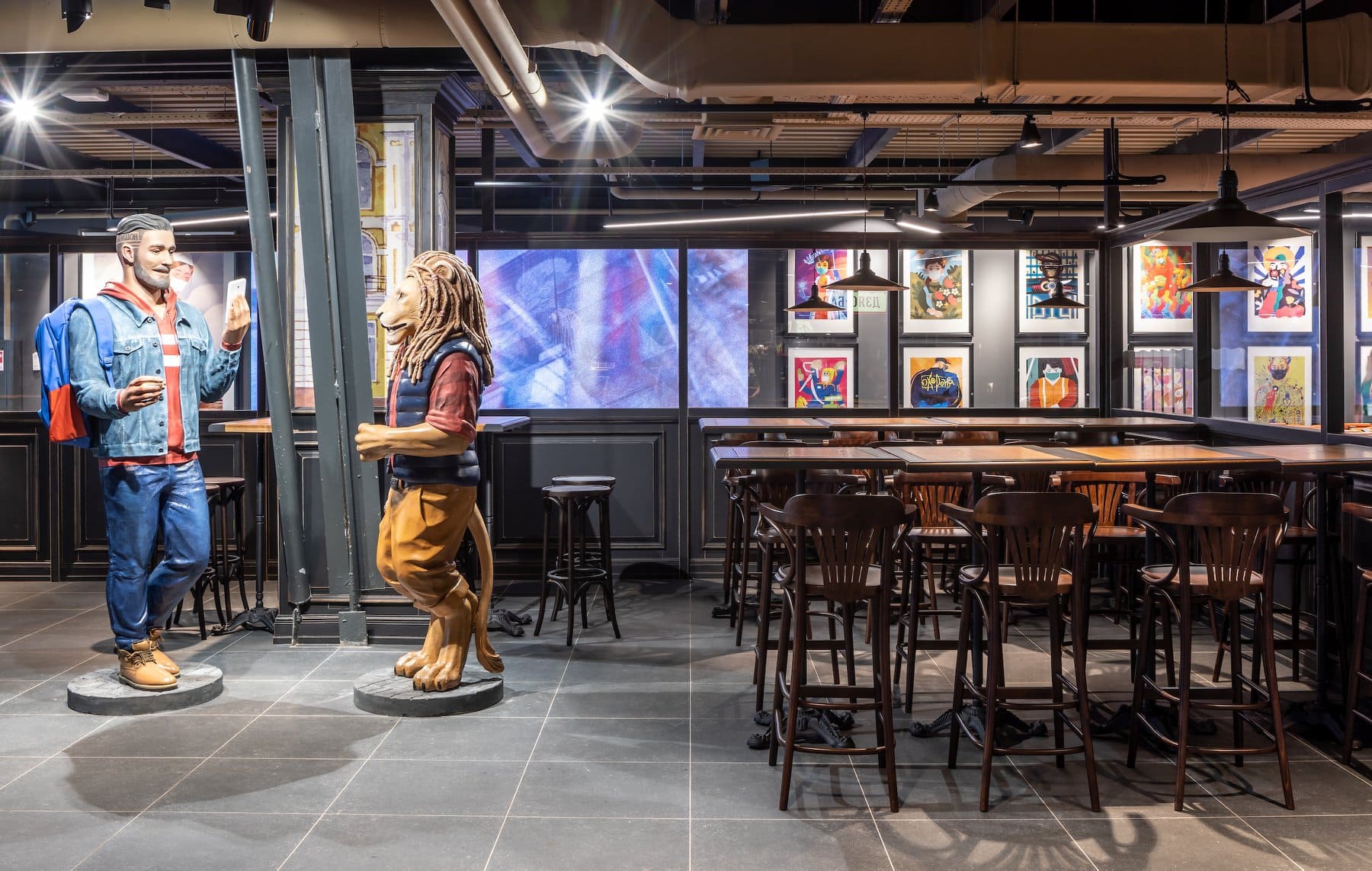 Зображені ці герої також і на стінах супермаркету, де Самсон і лев разом ловлять рибу, відвідують Києво-Могилянську академію, п’ють вино із Тарасом Шевченком, їздять на червоному запорожці, їдять пиріжки у кав’ярні та п’ють квас.