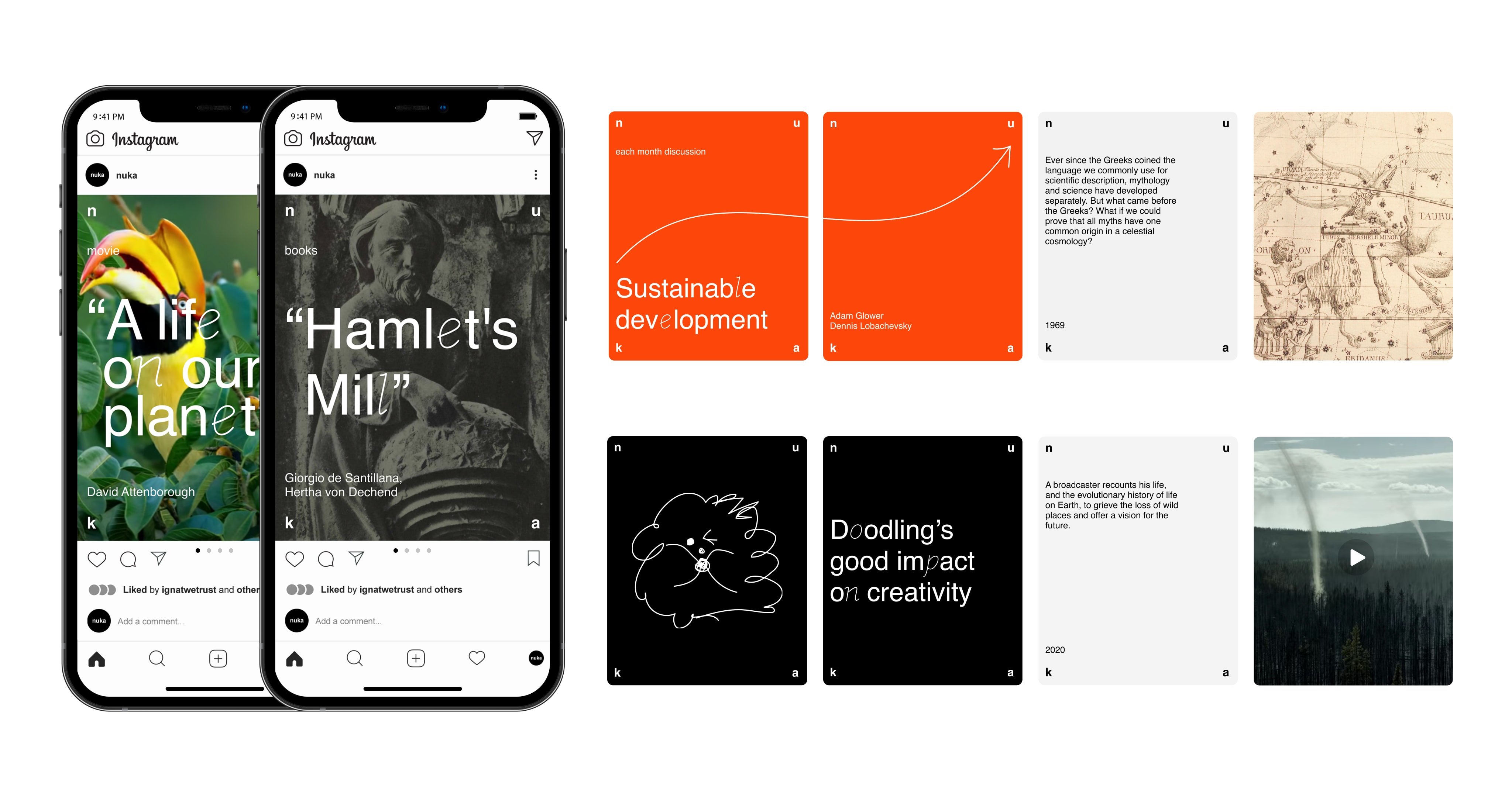 O0 Design працювали над візуальним стилем nuka. Головна ідея — помістити у центр уваги користувачів та їхні історії.