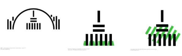 Финальным победителем тоже стала работа Антона Гусовского. Свою идею он объясняет так: «Логотип являет собой «пиксель», состоящий из четырех элементов — фирменных колонн-плашек: 1 плашка — 10 лет, 4 плашки — концепция развития на 40 лет.