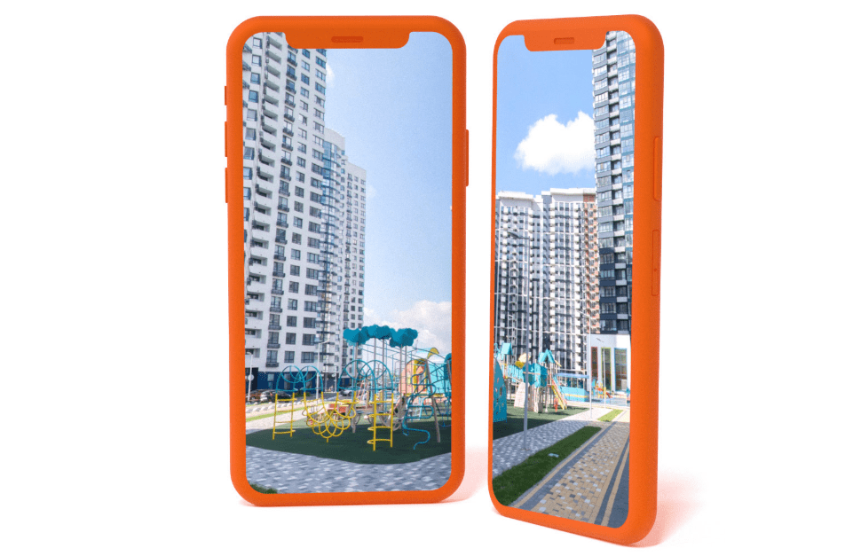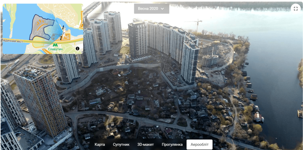 Дизайнери додали об’ємні фото з коптера в режимі “Аерообльоти”. Вони допомагають оцінити, що знаходиться довкола комплекса, або ж оцінити темпи будівництва.