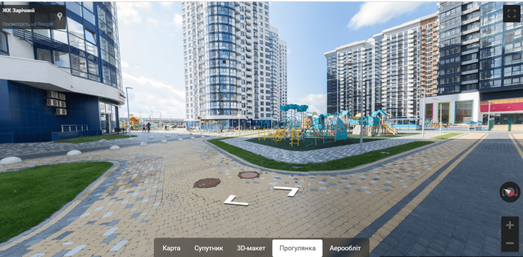 Також кожен користувач може віртуально прогулятися побудованою частиною комплексу, щоб оцінити, як виглядає територія ЖК.