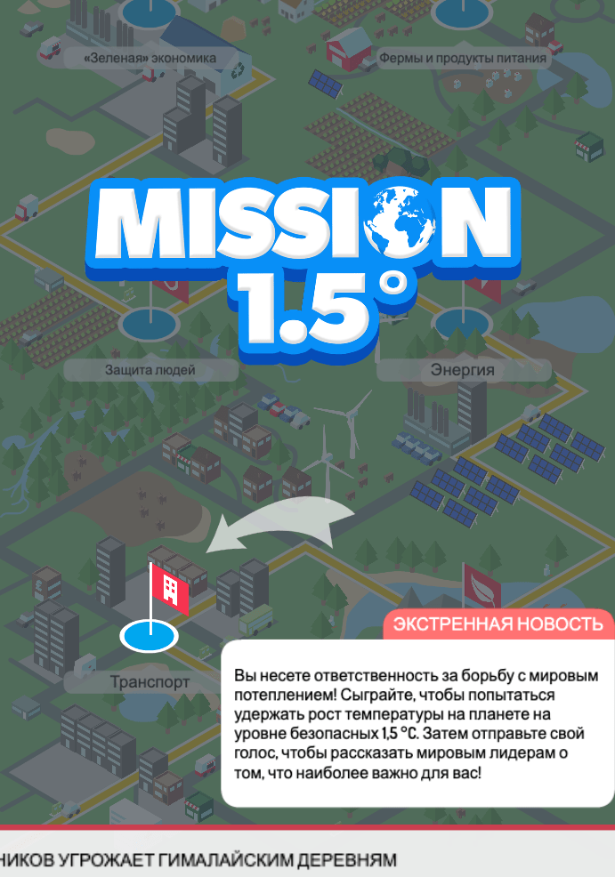 Найглобальніше опитування у світі щодо кліматичних змін має намір дати 20 млн людей можливість висловитися про проблему. Гравцям пропонується взяти на себе функції відповідальних осіб, аби прийняти рішення, які допоможуть досягти мети обмеження зростання температури до 1,5 градуса за Цельсієм. Потім вони проголосують за ключові дії, які потрібно зробити. Дані будуть проаналізовані та надані урядам.