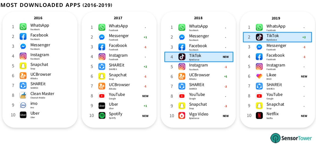 Найбільш обговорюваним додатком став TikTok, адже його завантажили понад 700 мільйонів разів і він зумів перегнати Facebook та Instagram за кількістю завантажень. І якщо дивитися окремо, то на iOS-пристроях у 2019 році першим був саме TikTok.