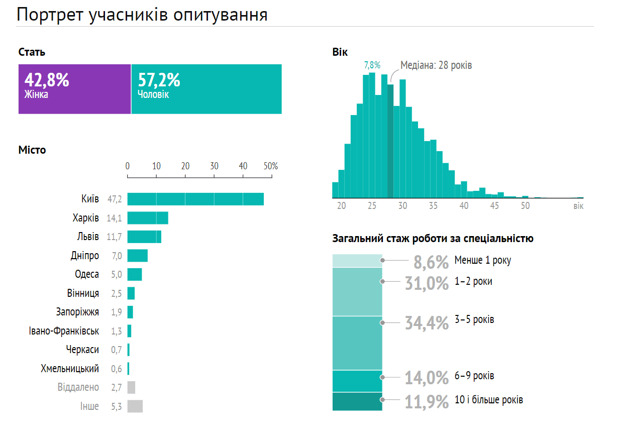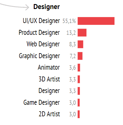 В опитуванні взяли участь UI/UX Designer, Product Designer, Web Designer, Graphic Designer, Animator, 3D Artist, Designer, GameDesigner, 2D Artist.