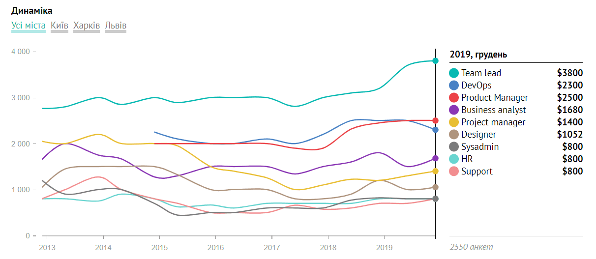 В середньому минулого року дизайнери заробляли $1000 на місяць. Це на $100 більше, ніж у 2018 році. Зараз динаміка продовжує рости.