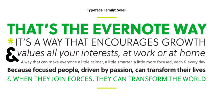 Також зазнало змін написання слова «Evernote». В попередній версії воно cкладалось з великих літер, написаних шрифтом Caecilia у світло-зеленому кольорі. Новий напис зроблено шрифтом Publico чорним кольором.