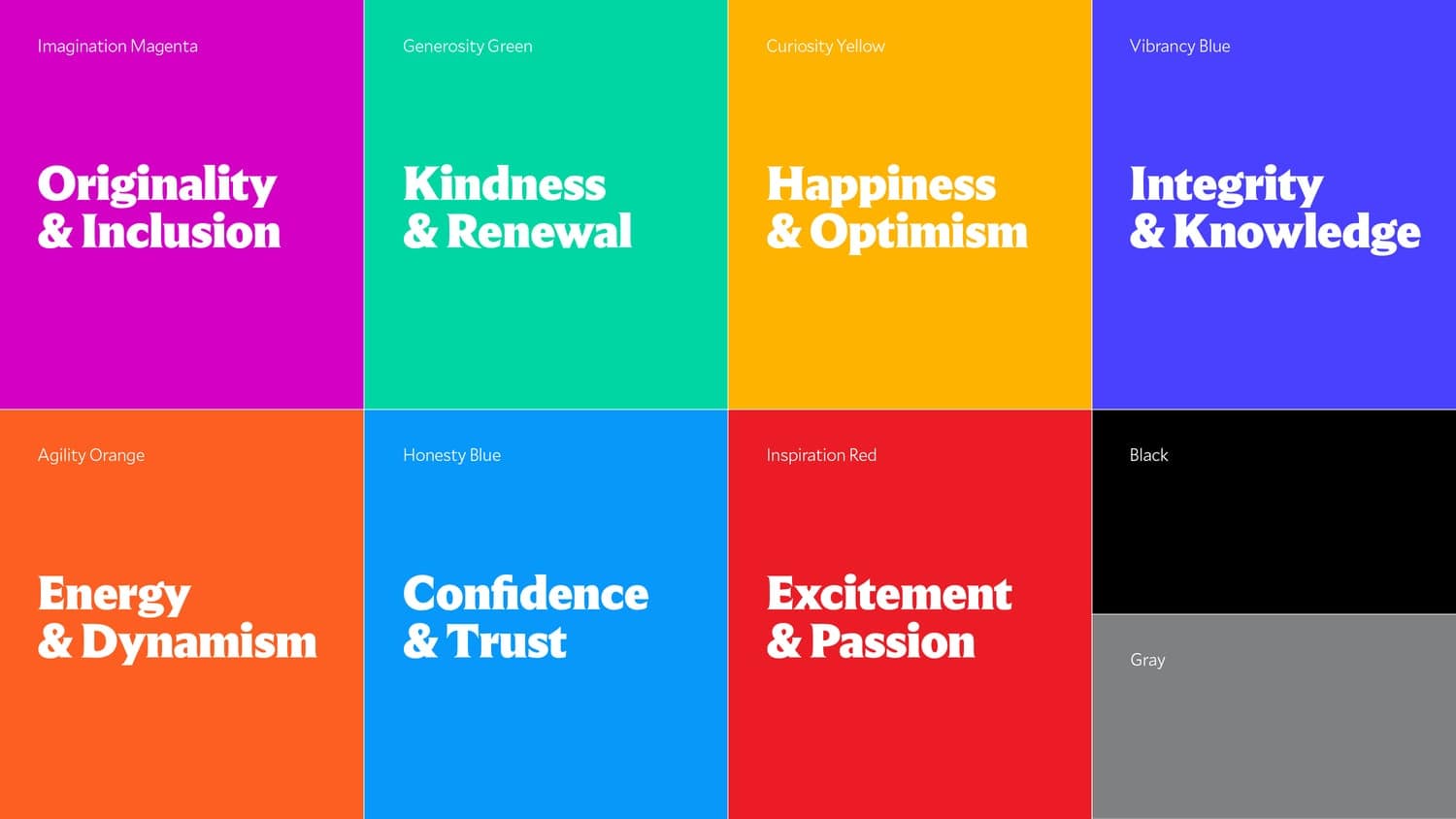 Кольори використовуються в несподіваних поєднаннях, які надають музею яскравої присутності. Гнучка система оживає у висловлюваннях брендів, які варіюються від елегантних та вишуканих до сміливих, веселих та креативно грайливих.
