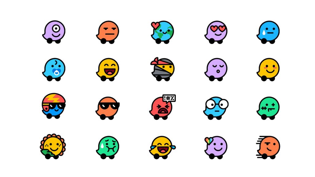 Дружні значки Waze не змінилися, але тепер краплі на колесах мають трохи більше індивідуальності. Форма нагадує хмару, це підкреслює те, що додаток зроблено не лише для навігації, але й для спілкування.