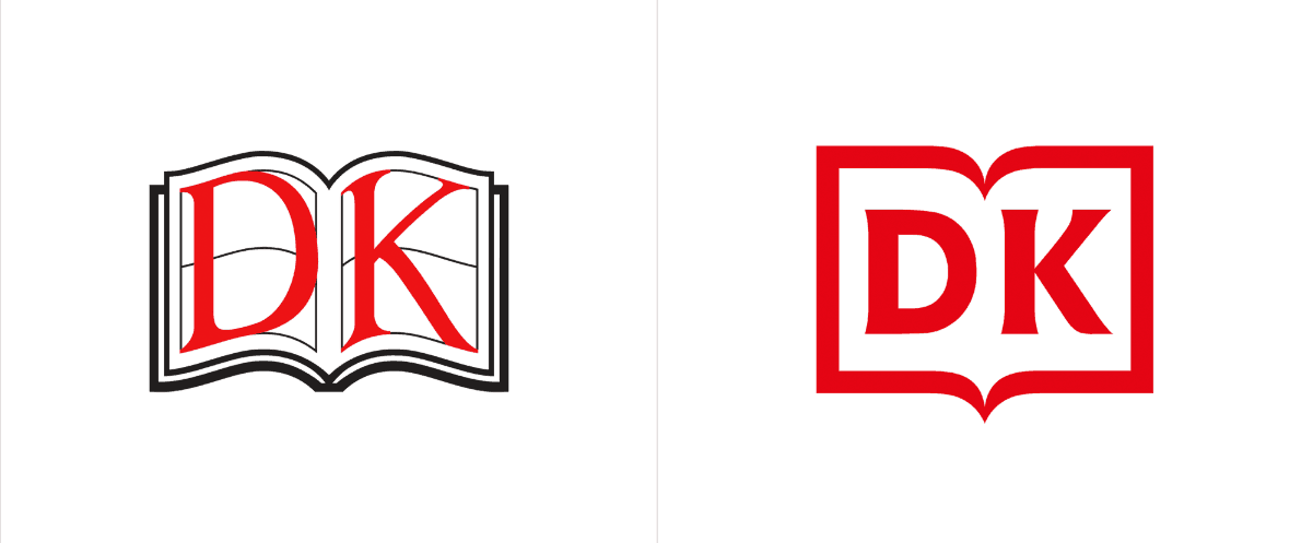 Минулий логотип видавництва також був створений студією Pentagram. Цього разу команда пройшла серію ітерацій дизайну, які вдосконалили і спростили знайомий логотип для його використання в різних масштабах, на різних платформах і в додатках. Новий логотип зберігає центральний мотив відкритої книги, який містить монограму “DK”, але спрощує її та використовує зроблені на замовлення сучасні форми букв із зарубками.