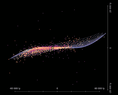 Астрономи визначили координати кожної зірки щодо Сонця в трьох вимірах. Виявилося, що Галактика згинається вгору з одного боку і вниз з іншого, трохи нагадуючи зображення капелюха. Чим викликано це викривлення, поки невідомо.