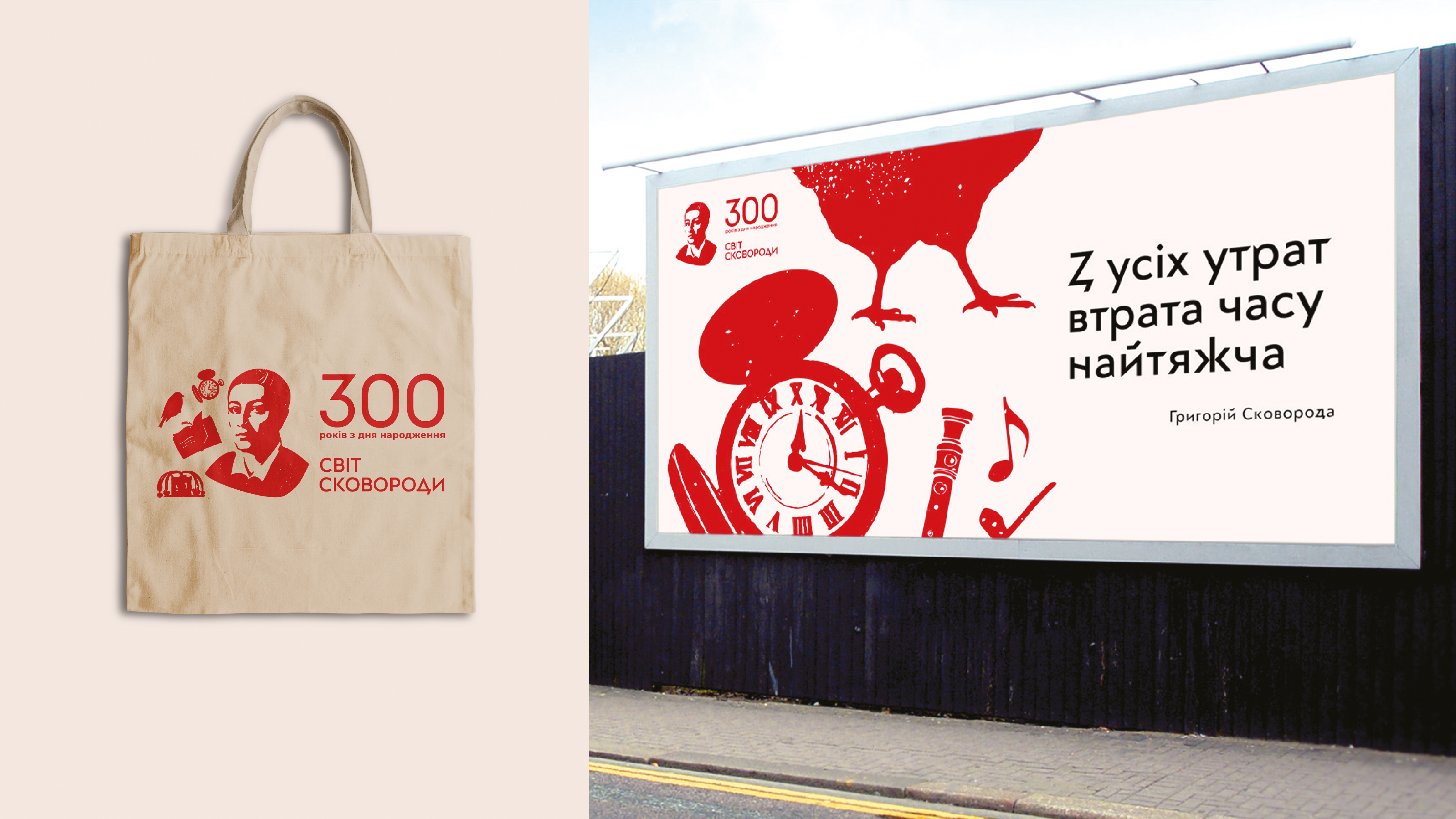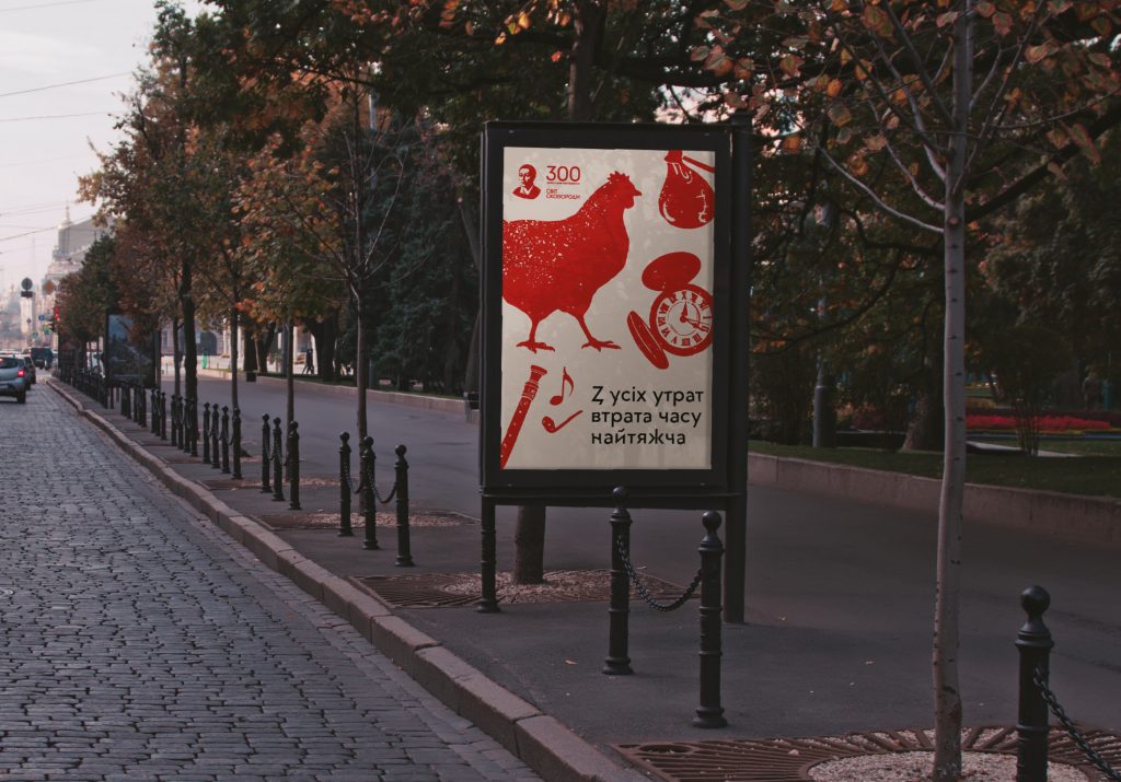 Айдентика кампанії побудована на поєднанні образу Сковороди з графічними елементами з його світу: атрибутами життя, символами та героями творів. Ними стали торбинка й флейта — супутники філософа-мандрівника; фонтан «Нерівна всім рівність», який він намалював; бджола, жайворонок, вовк — герої байок та інші символи.