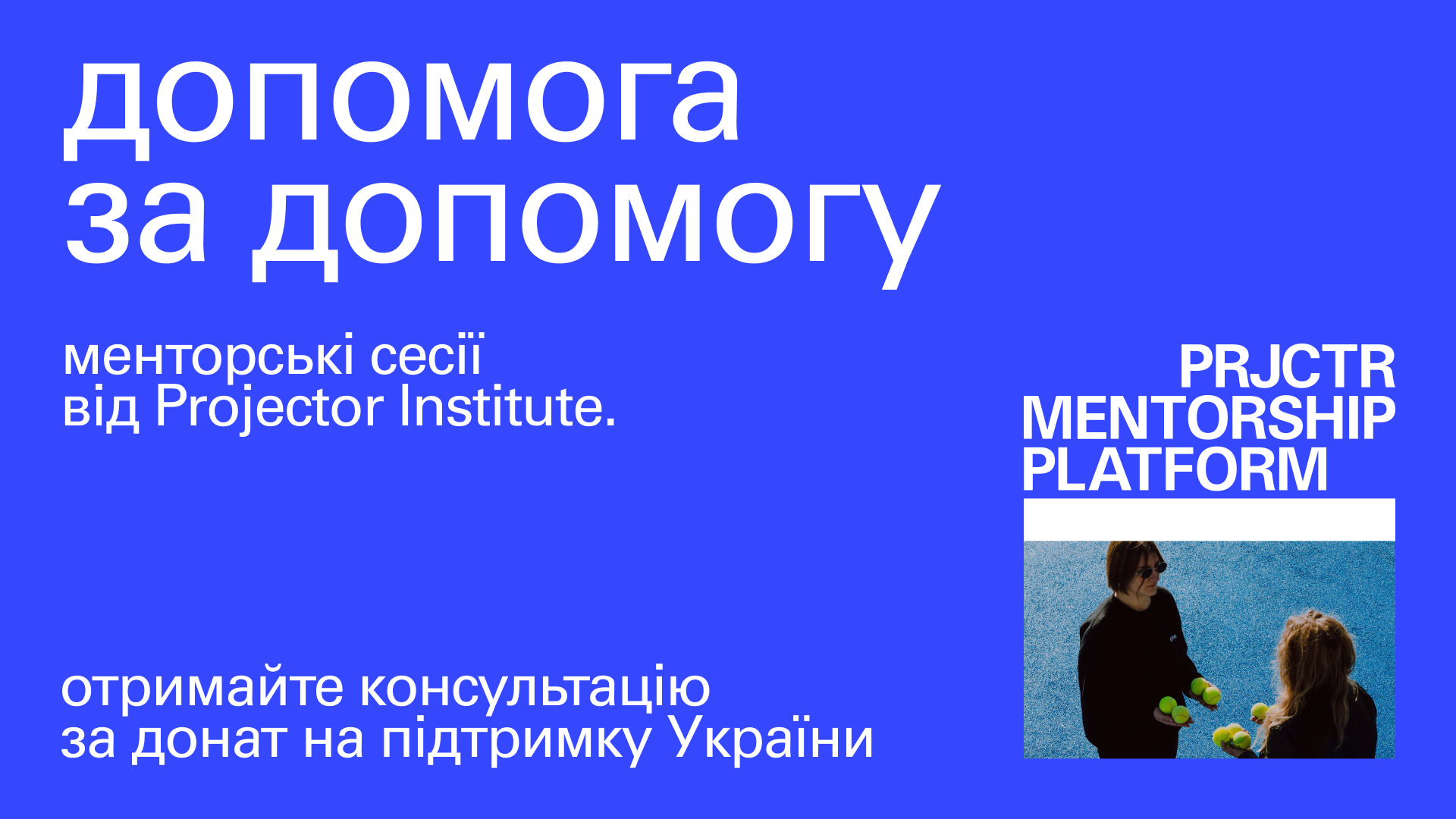 Платформа працює на благодійний основі. Менторську сесію можна придбати за донат на підтримку України – перерахувати кошти на один з фондів: Повернись живим, Projector Creative & Tech Foundation, Kolo, Госпітальєри або на спецрахунок НБУ.