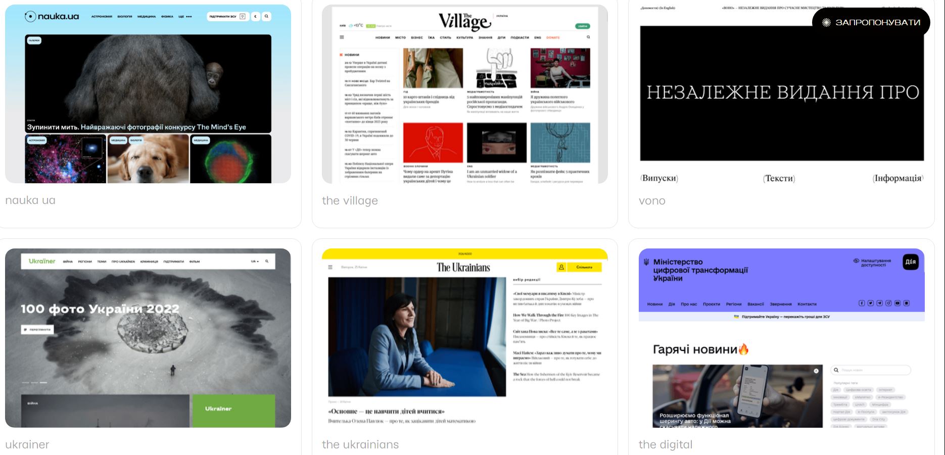 Дизайнери Курочкін Андрій та Анатолій Шовковий запустили Ridne — сайт, на якому зібрано приклади сучасного вебдизайну українською мовою.