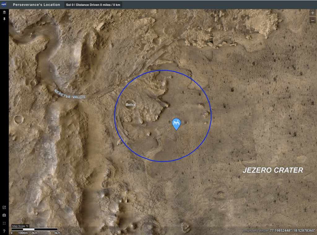 Мапа показує онлайн місцерозташування на поверхні Марса нового марсохода NASA – Perseverance. Онлайн-мапу розробили за допомогою opensource-JavaScript-бібліотеки Leaflet. Вона дозволяє швидко створювати онлайн-карти.