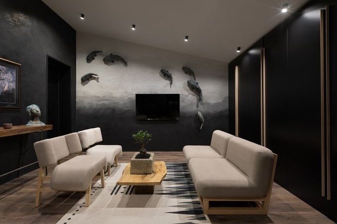 Цікаво те, що квартиру розробили та втілили для родини архітектора та дизайнера, засновника студії Сергія Махна. Він розповів, що у проекті окрім японської філософії вабі-сабі об’єдналися також українські традиції, сучасне мистецтво та родинний затишок. Так, наприклад, стіни виконані в технології, яку наші прадідусі-прабабусі використовували у хатах-мазанках.
