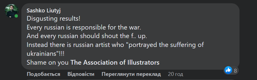 В українській ілюстраторській спільноті запропонували виключити Анну зі списку переможців та анулювати рішення журі й планують відправили відповідні листи керівництву Асоціації.