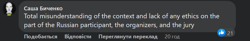 Тотальне нерозуміння контексту та відсутність будь-якої етики з боку російського учасника, організаторів та журі