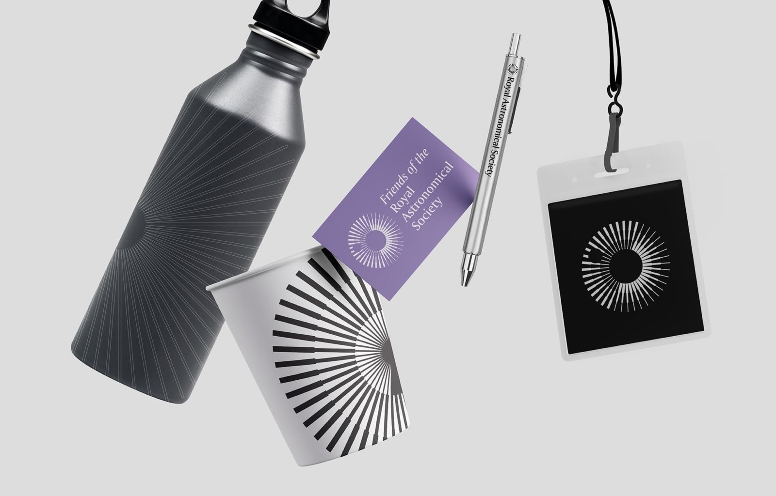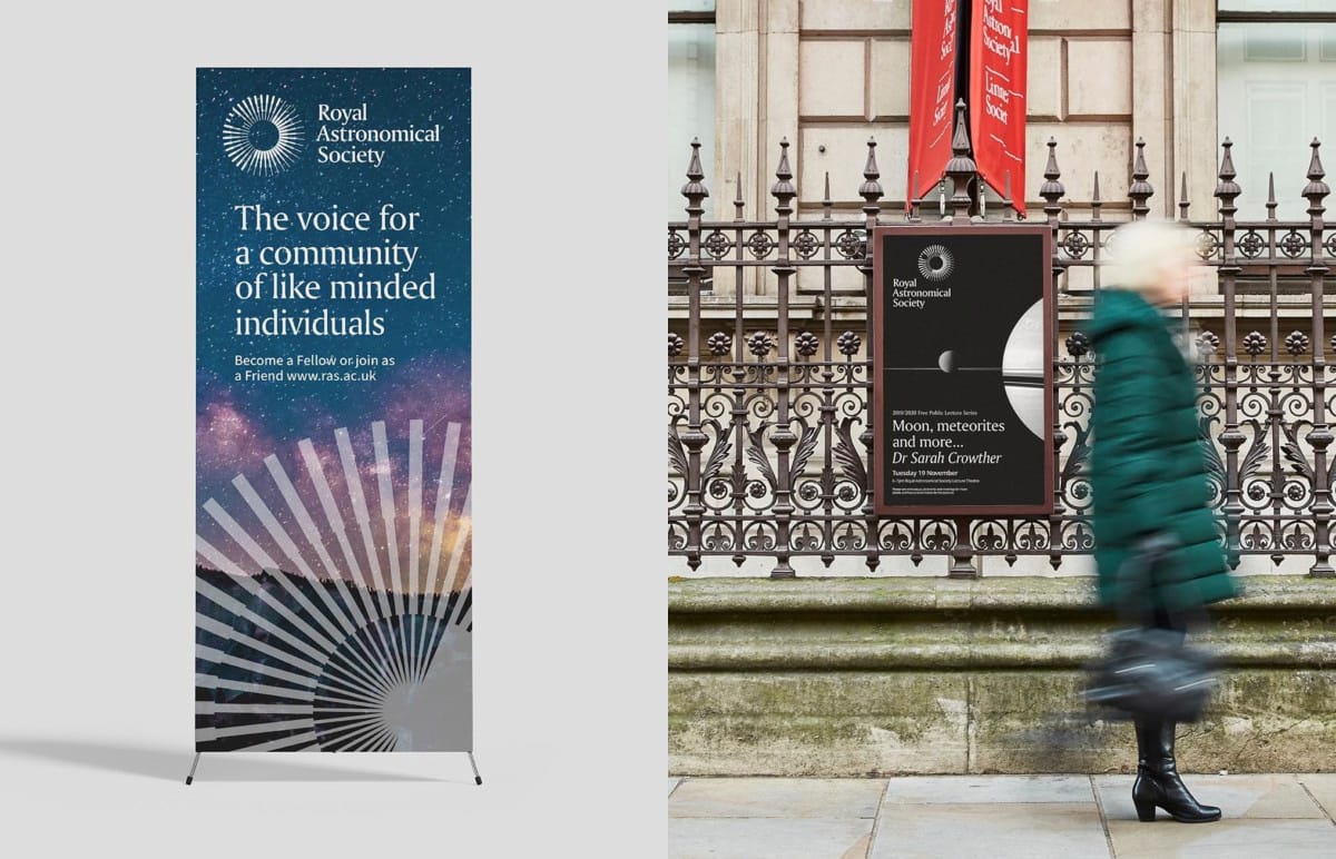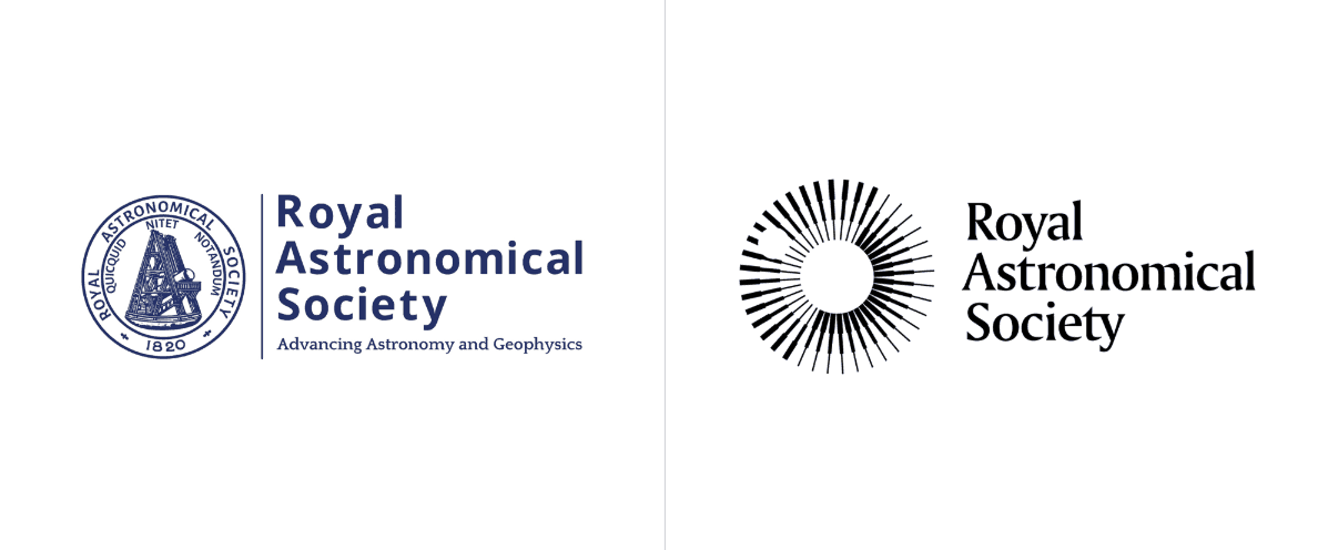 Старий логотип був гравіюванням телескопа, розробленого першим президентом RAS. Новий візуальний стиль осучаснив логотип. Він виглядає «королівським, астрономічним, і як ніби логотип є частиною об’єднання».