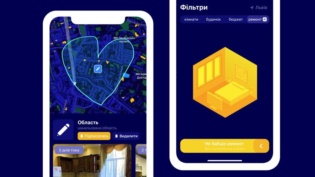 Додаток містить AI, який видаляє з сервісу дублікати, а фільтри допомагають відсортувати квартири за квадратурою, вибрати новобудови або будинки старого житлового фонду.