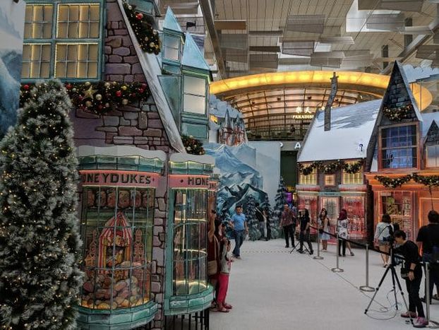 На період свят в одному з терміналів з’явилися десятки локацій з фільму. Тут можна побачити село Гогсмід, Совину пошту і Хогвартський експрес.