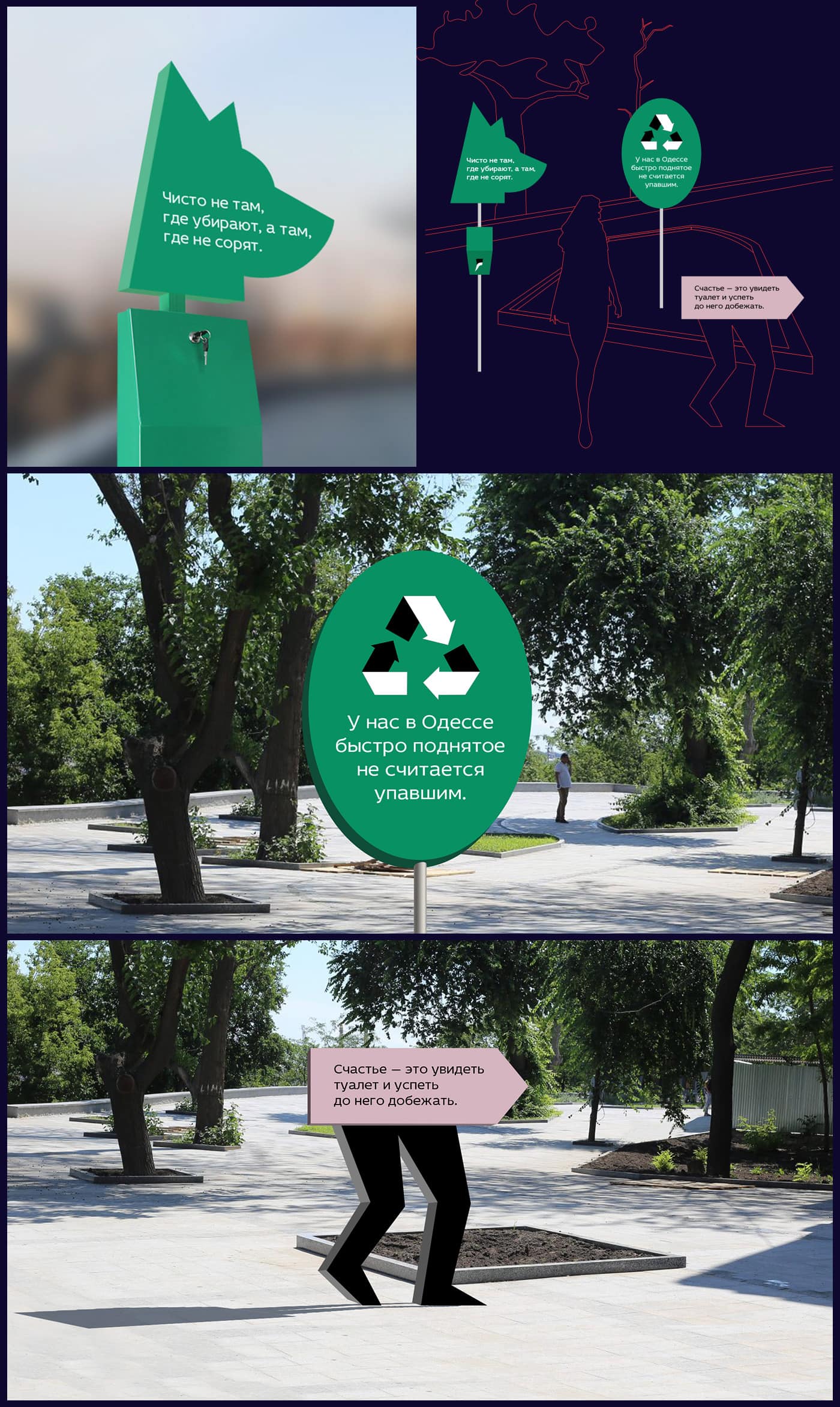 Команда агенції воліла показати, що місту потрібен сучасний підхід до дизайну громадських місць: правильна і зручна навігація, місця для відпочинку, артоб’єкти – те, завдяки чому простір може спілкуватися з перехожими.
