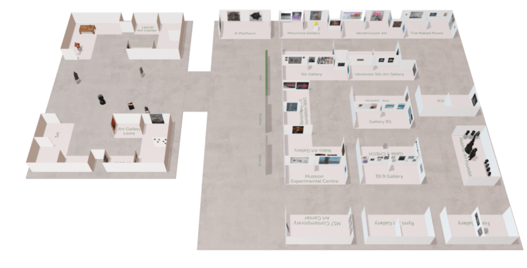 На онлайн-платформі представлені віртуальні стенди 25 галерей-учасниць, серед яких: Mironova Gallery, Voloshyn Gallery, Abramovych Art Agency, The Naked Room, Socl:e, Ukrainian Silk Art Gallery, Хлєбзавод, Галерея РА, Bereznitsky Art Foundation, Nebo Art Gallery, Галерея ЧЕЧ, Gallery 83, Makhno Art Foundation, X – Platform, 39.9gallery, Forsa Gallery, Muzeon Experimental Centre, Rymi, M17 Contemporary Art Center, Set, PVS Lutsk, Lavra Art Gallery, Radius, Centro LESCER, Vakulenko Art Consulting, Квартира 14.