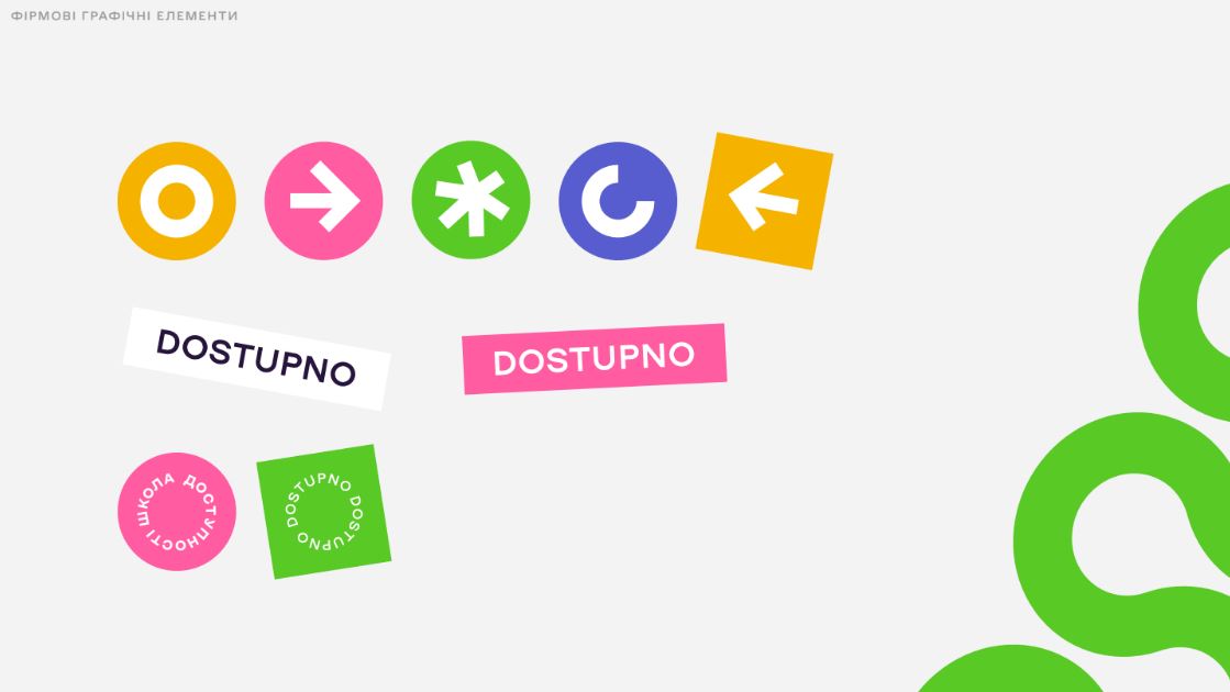 В основі логотипу – зелене коло та шрифтовий напис DOSTUPNO.